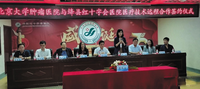 本报讯 秋高气爽,硕果飘香。9月16日下午,北京大学肿瘤医院与绛县红十字会医院医疗技术远程合作项目在绛县红十字会医院正式签约,标志着两院建立的纵向联动机制正式启动,从而打破了地理限制和信息孤岛,让绛县及周边患者就近就医,享受国际水平医疗服务,畅通疑难重症患者进京转诊就医通道。