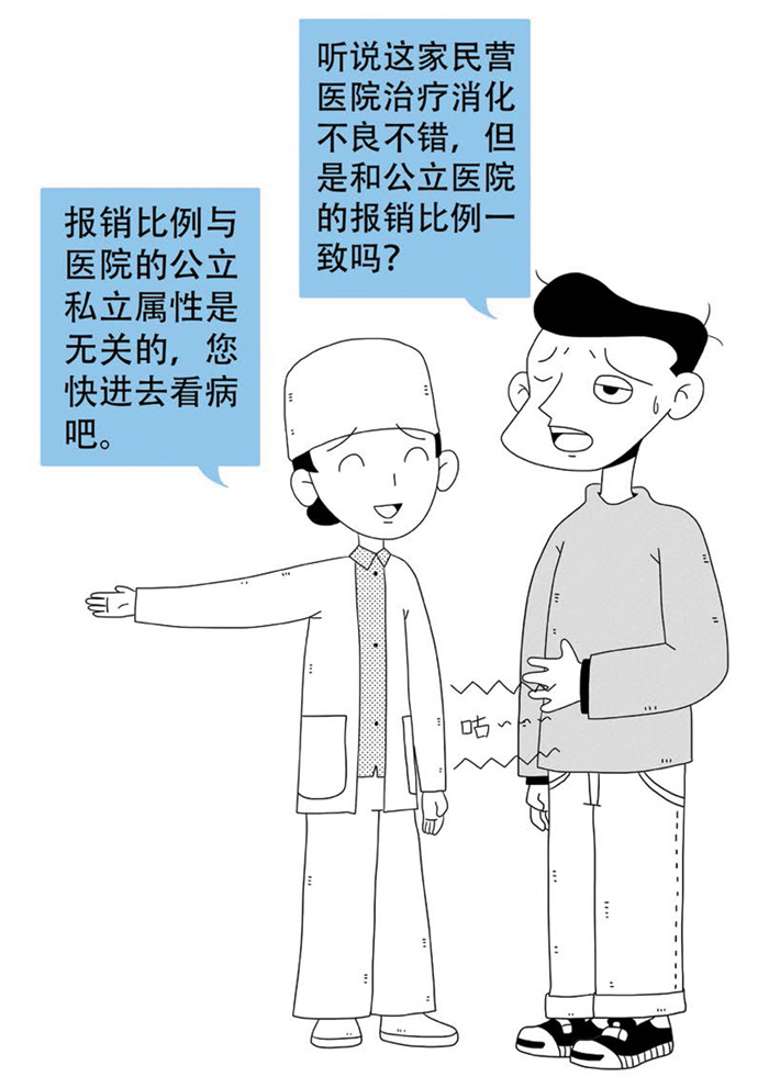 问15:张先生听说一家民营医保定点医疗机构治疗消化不良很好,但不知道是否与公立医疗机构报销比例一致?