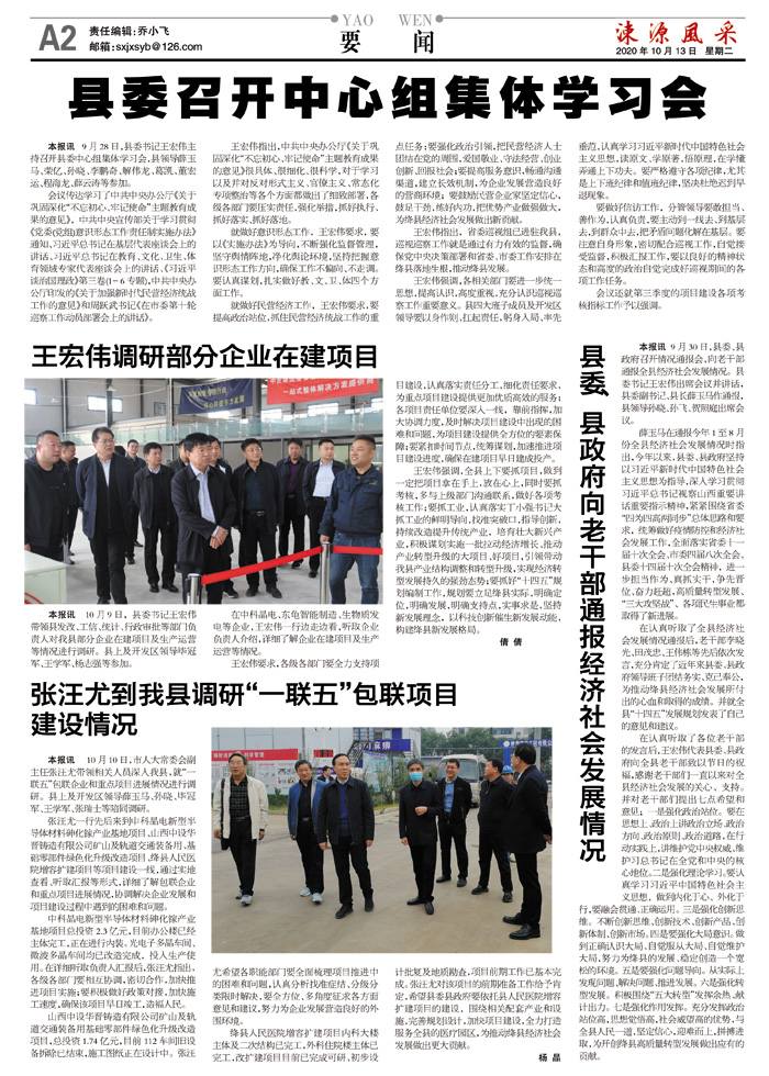本报讯 9月28日,县委书记王宏伟主持召开县委中心组集体学习会,县领导薛玉马、荣亿、孙晓、李鹏奇、解伟龙、葛凯、董宏运、程海龙、薛云涛等参加。