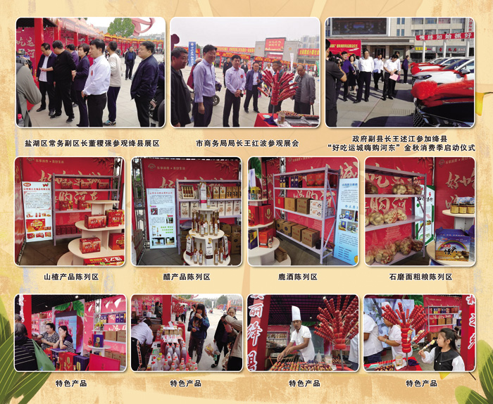 名优特产、手工精品、文创产品展销活动活动是继汽车(摩托)展销嘉年华之后,“好吃运城 嗨购河东”金秋消费季系列活动的又一次盛会。展销时间从9月26日至9月30日,设13个县(市、区)及运城经济开发区农特产品展区、妇女手工艺精品展区、文创产品展区、电商直播带货展区、扶贫产品展区、出口转内销产品展区、各类特色食品展区七大展区。我县维之王食品有限公司、隆立康鹿业科技有限公司、圣波醋业有限公司、永红粮油等企业参加展销,琳琅满目的商品,为运城市民提供了一场节日购物、娱乐、消费、休闲的好去处。