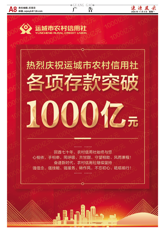 热烈庆祝运城市农村信用社各项存款突破1000亿元