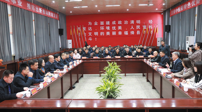 薛玉马在致辞中代表县委、县政府对评审专家组的到来表示热烈的欢迎和衷心的感谢,并就我县创建全国基层中医药工作先进单位情况进行了汇报。他指出,近年来,我县认真贯彻落实习近平总书记关于中医药的重要指示精神,坚持中西医并重,传承发展中医药事业,狠抓人才队伍建设,夯实基础,完善网络,全力推进中医药事业健康发展。薛玉马表示,将以此次评审为契机,继续深入贯彻落实《中医药法》和国务院《关于扶持和促进中医药事业发展的若干意见》等精神,加强对中医药工作的组织领导,加大对中医药事业的财政投入和人才保障力度,打造一个集医疗、养老、度假旅游、中药材种植、中药饮片加工为一体的中医药健康产业园区,力争半年内组建中医联盟,实现共享药房,提升全县中医药综合服务能力,真正在继承中发展,在发展中服务,推动我县中医药事业持续健康发展。