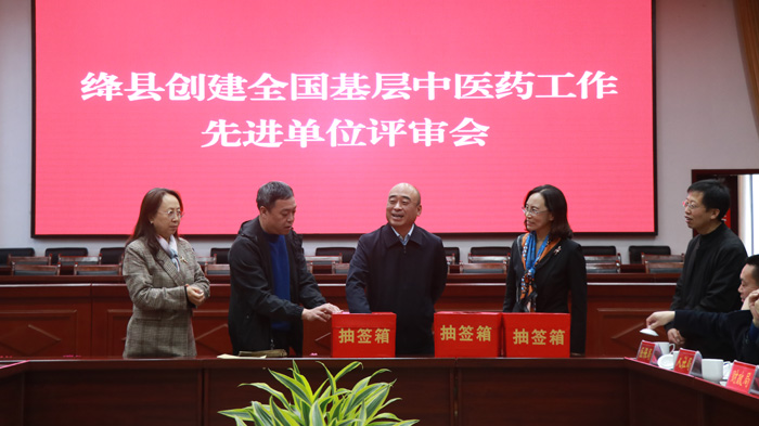 评审会上,专家组观看了专题片《创新发展的绛县中医药事业》,以现场抽签的形式确定了接受实地检查的乡镇卫生院、村卫生室名单,并对我县相关职能部门负责人进行了访谈,查阅了创建工作相关资料。