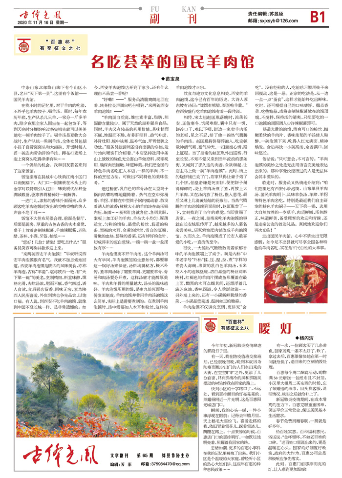 走出国民羊肉馆,心中不禁生出无限感慨:如今足不出县就可尽享全国各种特色的羊肉名吃,实在是平民百姓的大幸事。