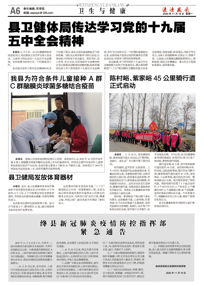 会议强调,学习贯彻党的十九届五中全会精神要与本职工作紧密结合,要认真回顾梳理“十三五”规划期间卫健体局重点任务完成情况,找准短板,转变观念,局班子带头发力,全体人员提振精神,弘扬正气,再鼓干劲,让我县卫生健康这艘航船乘势而上,扬帆起航,促进卫生健康这一重大民生工程高标准落实、高质量发展。