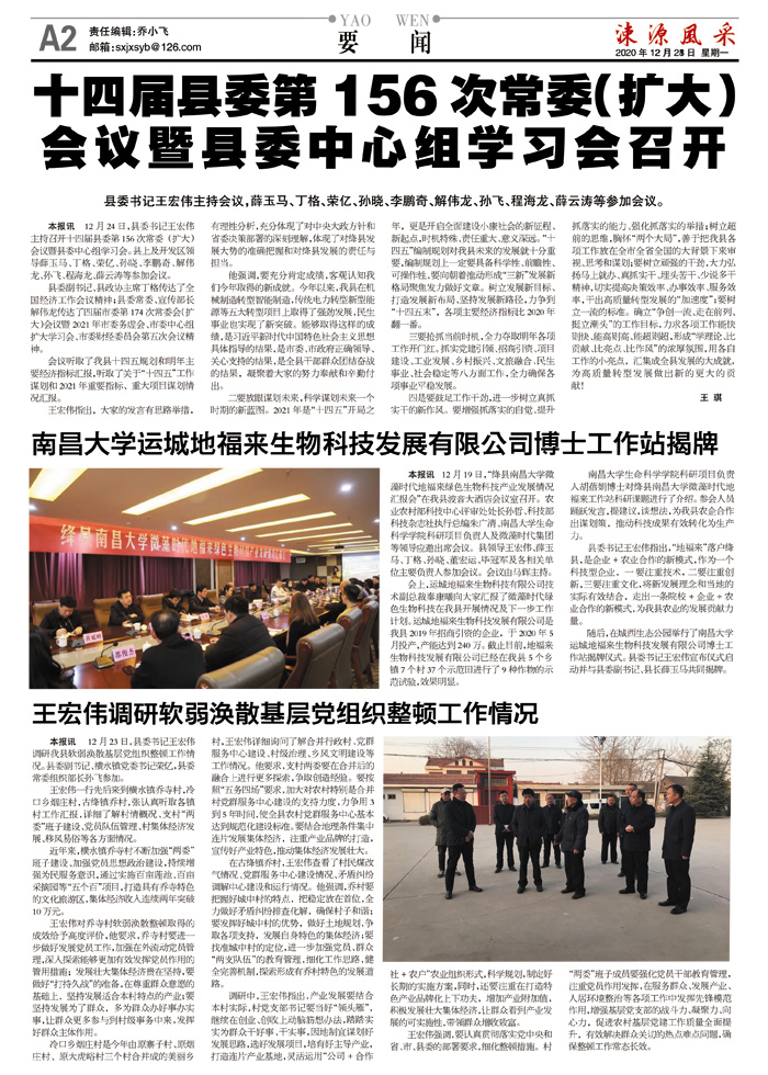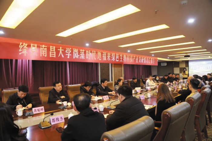 本报讯 12月19日,“绛县南昌大学微藻时代地福来绿色生物科技产业发展情况汇报会”在我县波音大酒店会议室召开。农业农村部科技中心评审处处长孙哲、科技部科技杂志社执行总编朱广清、南昌大学生命科学学院科研项目负责人及微藻时代集团等领导应邀出席会议。县领导王宏伟、薛玉马、丁格、孙晓、董宏运、毕冠军及各相关单位主要负责人参加会议。会议由马辉主持。