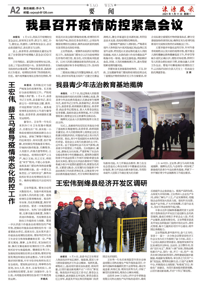 本报讯 1月5日,我县召开疫情防控紧急会议,县领导王宏伟、薛玉马、荣亿、孙飞、董宏运、巩建明、马辉等参加会议,会议由县委副书记、县长薛玉马主持。