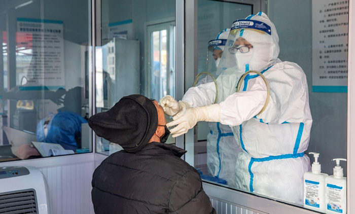 临近春节,外省返乡人员逐渐增多,该院精心部署,加强检测力量,设置了3个检测点分别对外省返绛人员、有发热症状人员和本地自愿检测人员进行取样。同时开展对重点人群进行预约上门检测的服务。据悉,自1月7日至今,该院平均每天取样数达700余人次。 金玉敏 摄