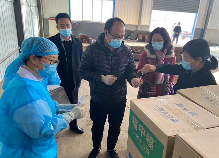 本报讯 1月19日,县疾控中心主任齐医变带领检验科工作人员到陈村镇孵化基地库房,为县退役军人事务管理局存放的6000袋大米、2000箱食用油进行核酸采样检测。