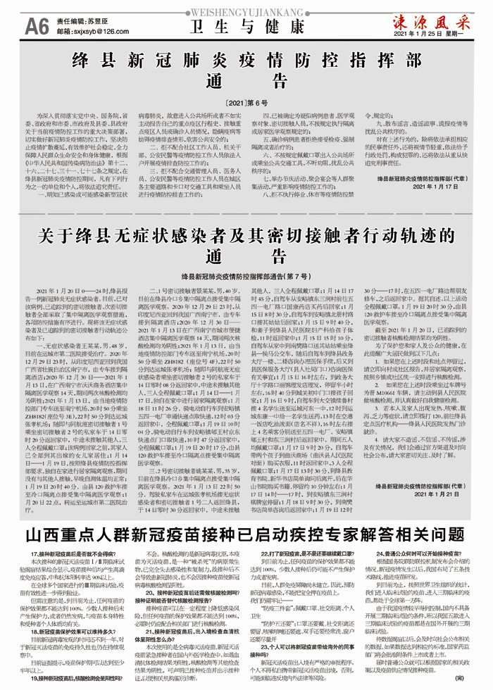 绛县新冠肺炎疫情防控指挥部通 告