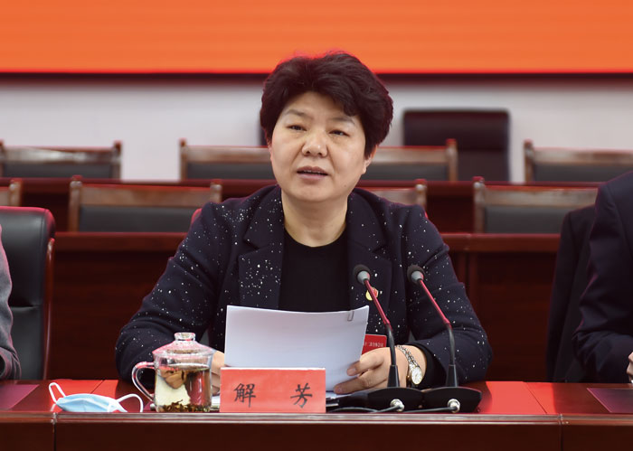 解芳强调,要主动适应新发展阶段、贯彻新发展理念、构建新发展格局,切实加强党对经济工作的全面领导。要提高站位、对标对表,不断提高政治判断力、政治领悟力、政治执行力,关注党中央在关心什么、强调什么,省委、市委和县委的聚焦点是什么、要求是什么,深刻领悟意图,结合具体实际,创造性抓好贯彻落实。要开阔视野、勤学善学,认真学习习近平新时代中国特色社会主义思想,把握实质、吃透内涵、理解要义,武装头脑、指导实践、推动工作。要认真学习党史,积极谋划开展党史教育,同时学习新中国史、改革开放史、社会主义发展史,深刻感悟共产党人的初心和使命,走好新时代长路。要认真学习国际国内经济形势,树立广阔的工作视野。要认真学习政策法律和业务知识,强化专业思维、专业素养、专业方法,干一行、爱一行、专一行、精一行,做善于抓工作的行家里手。要认真顶真、事事当真,以求真重塑作风。努力在转型发展中诠释初心使命、在为民服务中彰显政治自觉、在各项事业中折射坚定身影,努力创造无愧于新时代的崭新业绩。要求是务实、件件落实,强化经济调度,以周保旬、以旬保月、以月保季、以季保年。咬定目标,持续发力,用心用脑、精准精细,一锤接着一锤敲,一棒接着一棒跑,不出成果不松手、不达目的不罢休,确保有安排就有结果、有部署就有落实。