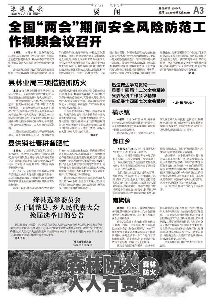 会上,党委副书记、镇长王张波传达了县委十四届十二次全会、2021年县委经济工作会议、省委全面深化“13710”工作制度推进会及省森林草原防火工作会议精神,并对全镇下一步工作进行了详细安排部署。党委委员、纪委书记蔚一宾传达了县纪委十四届七次全会精神。