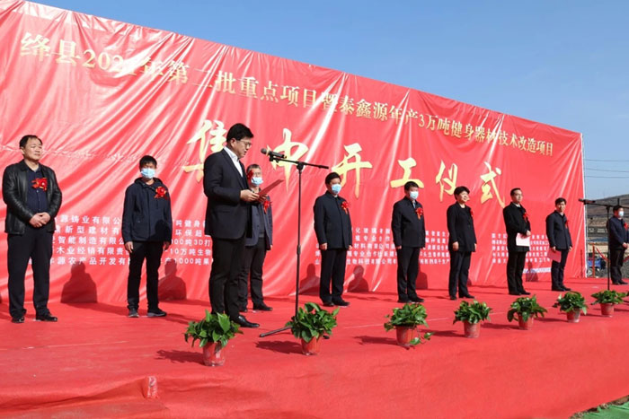 3月3日,我县2021年第二批重点项目暨泰鑫源年产3万吨健身器材技术改造项目集中开工。