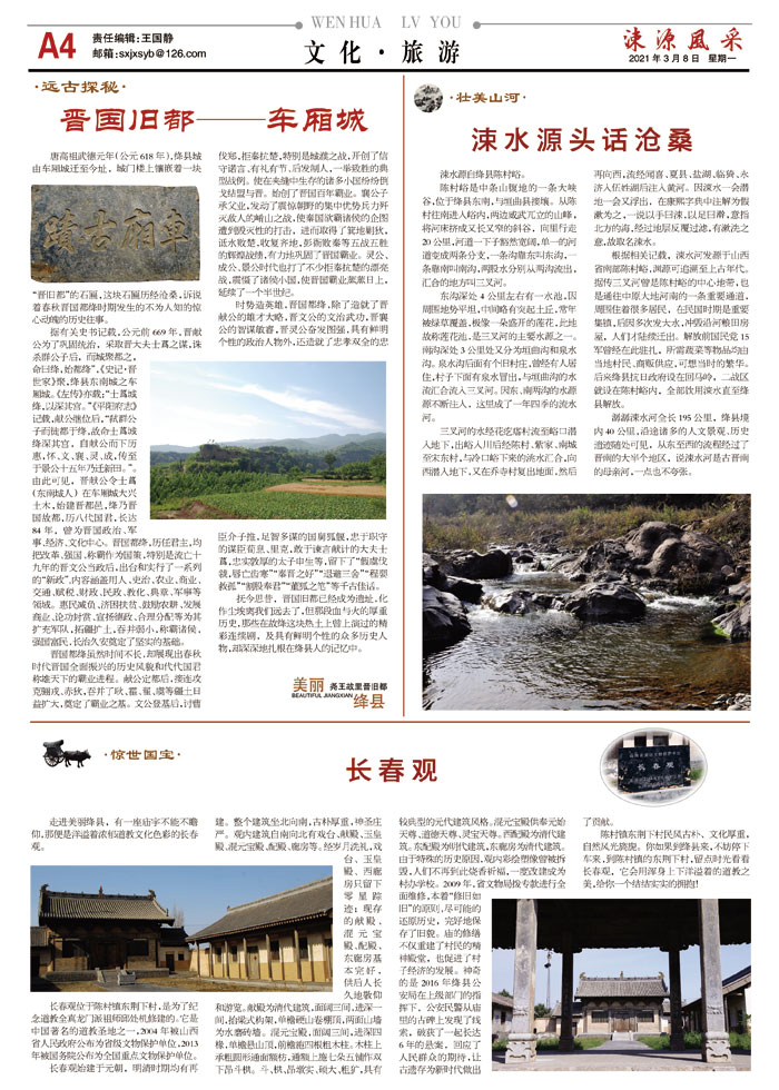 抚今思昔,晋国旧都已经成为遗址,化作尘埃离我们远去了,但那段血与火的厚重历史,那些在故绛这块热土上曾上演过的精彩连续剧,及具有鲜明个性的众多历史人物,却深深地扎根在绛县人的记忆中。