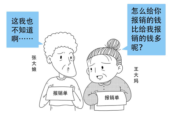 问14.富裕乡的张大娘参加的是城乡居民医保,县城的王大妈参加的是职工医保,两个人年龄相同,参保的医保类型不同。两人一起去医院开了同样的降压药,可报销的费用不同,这是什么原因呢 ?