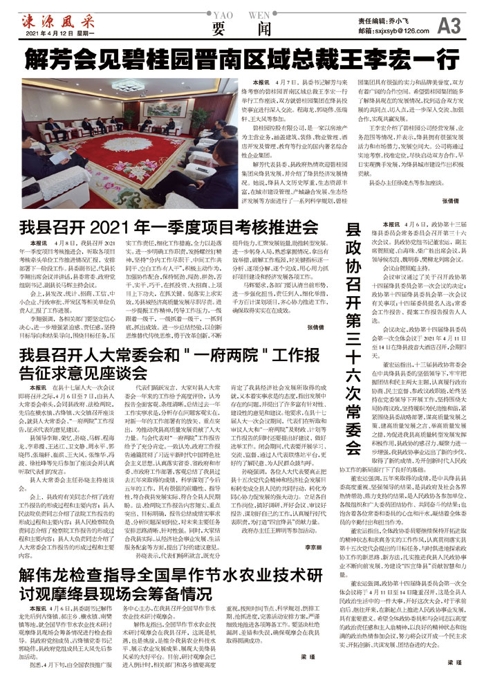 解芳会见碧桂园晋南区域总裁王李宏一行