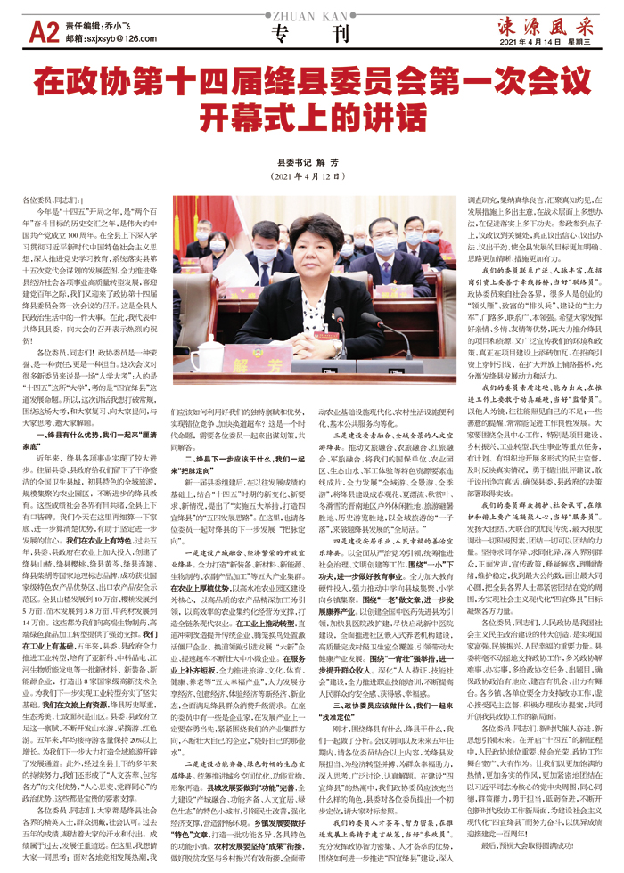 在政协第十四届绛县委员会第一次会议开幕式上的讲话