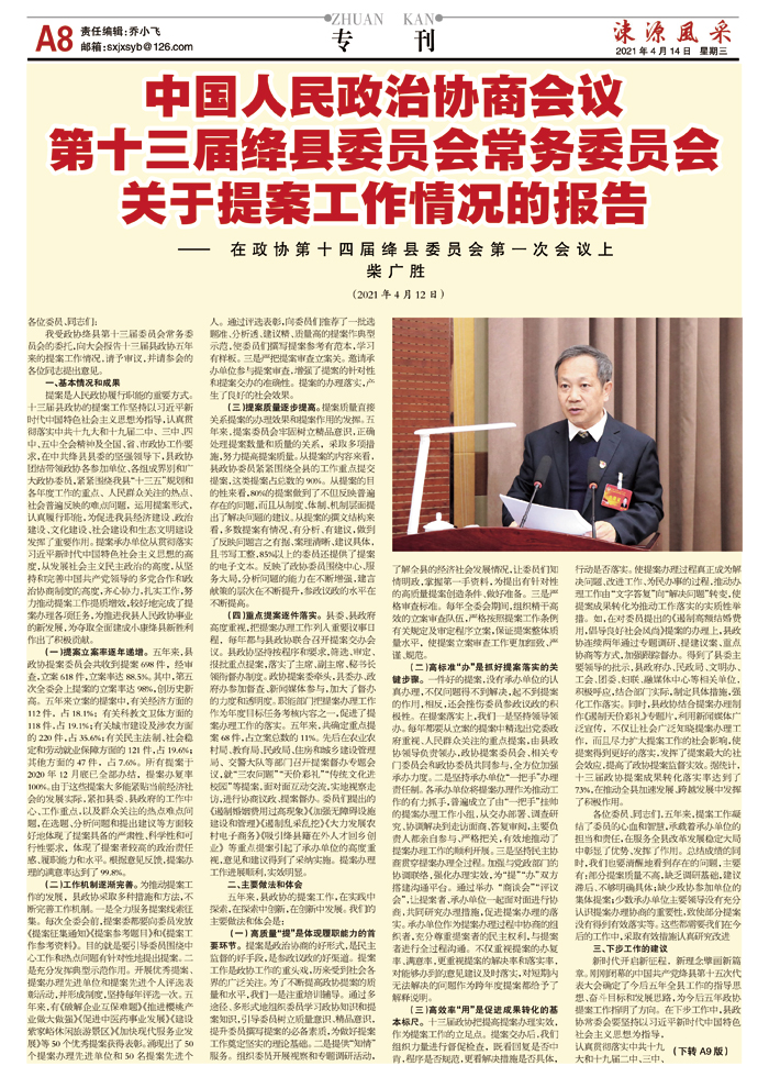 中国人民政治协商会议第十三届绛县委员会常务委员会关于提案工作情况的报告