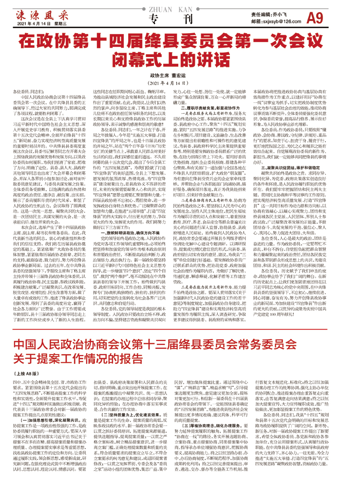 在政协第十四届绛县委员会第一次会议闭幕式上的讲话