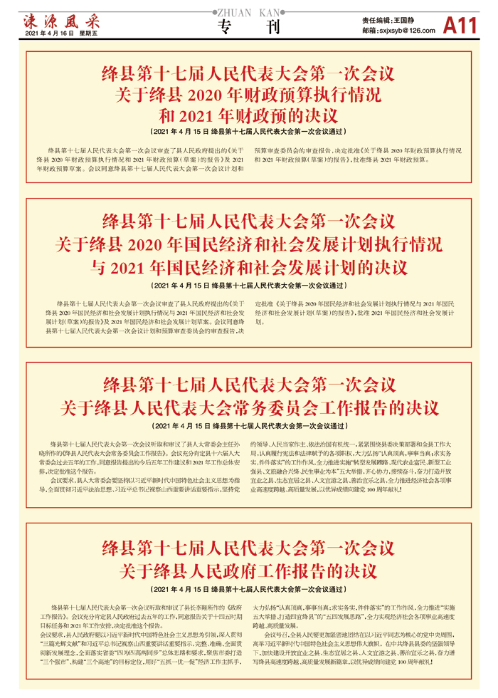 绛县第十七届人民代表大会第一次会议关于绛县2020年财政预算执行情况和2021年财政预的决议