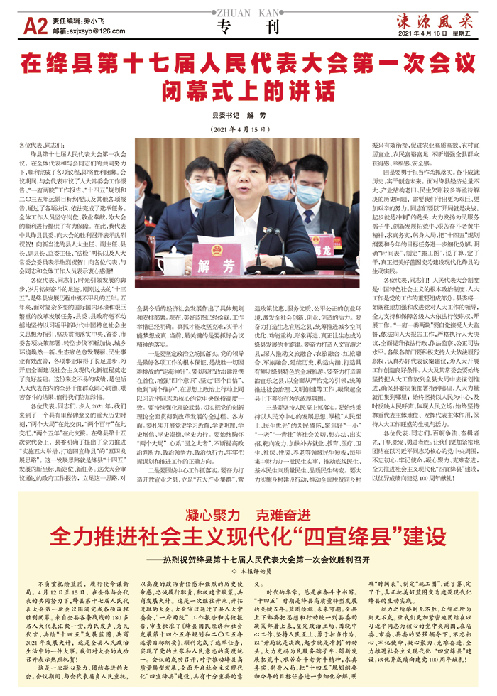 《涑源风采》贴近,决定影响力 涑源传媒编辑出版 微信:suyuanfengcai 邮箱:sxjxsyb@126.com 电话:6523423