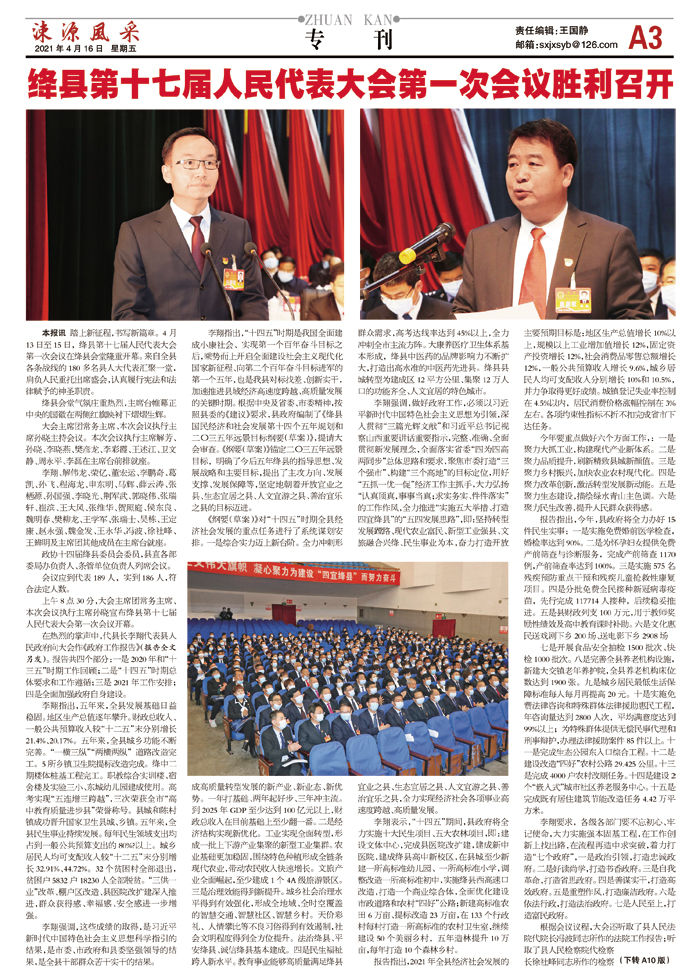 绛县第十七届人民代表大会第一次会议胜利召开