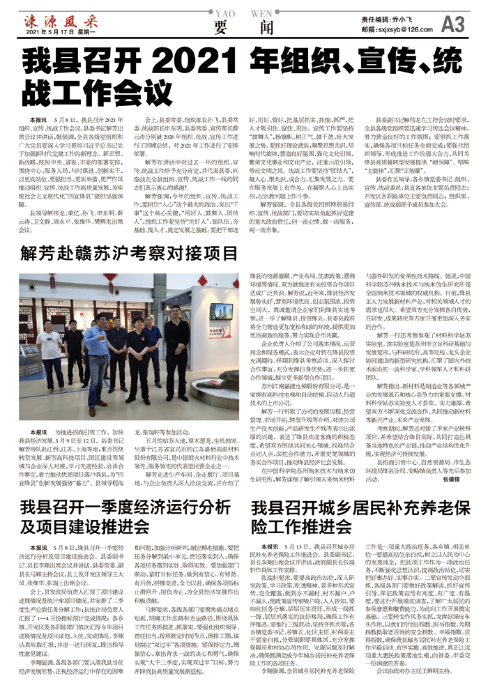 我县召开2021年组织、宣传、统战工作会议