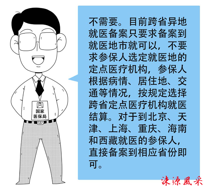 答31:参保人备案时不需要指定具体的医院,只需要指定就医的地市,就可以在该地所有的跨省异地就医定点医疗机构直接结算住院费用。此外,对于要去北京、天津、上海、重庆、海南和西藏异地就医的参保人,只需要直接备案到这些省份。王阿姨这种情况,只需要备案到北京市,则她在北京市所有的跨省异地就医定点医疗机构发生的住院医疗费用都可以直接结算。全国各地的跨省异地就医定点医疗机构的名单可以在国家医保局网站查询(www.nhsa.gov.cn)。