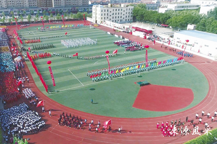 绿茵场上,伴随着激昂的运动员进行曲,来自全县中小学校的仪仗队、鼓乐队、运动员代表队、裁判员,迈着铿锵的脚步依次通过主席台,展现出全县青少年昂扬向上、奋发进取的精神面貌。