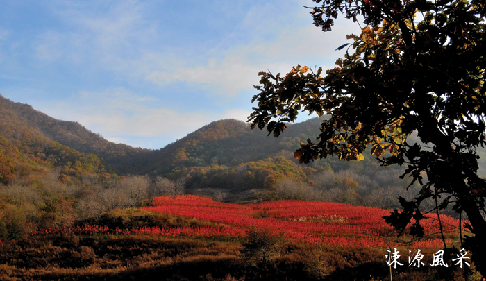 桑池的秋天是很美丽的。等到农历八月,山葡萄黑了,五味子红了,八月乍也咧嘴笑了,各种山野果子喂饱了山间劳作的人们,也欢喜着天上地下的飞禽走兽。天很远很蓝,空气透明度要比城里高出许多,放眼望去,山野如洗过一般清晰。最惹眼的,还数东边山洼里的那片红枫林。