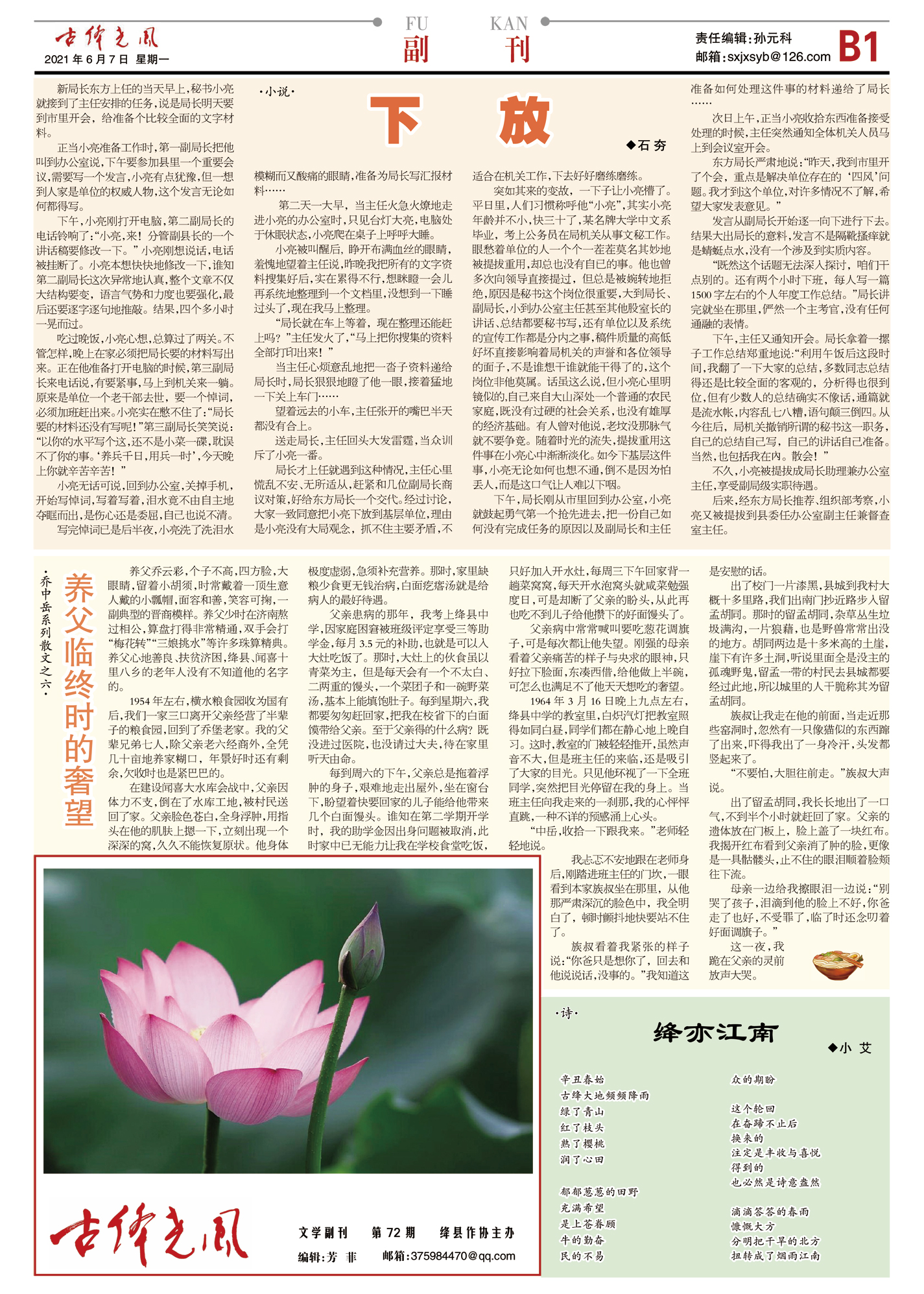 小亮无话可说,回到办公室,关掉手机,开始写悼词,写着写着,泪水竟不由自主地夺眶而出,是伤心还是委屈,自己也说不清。