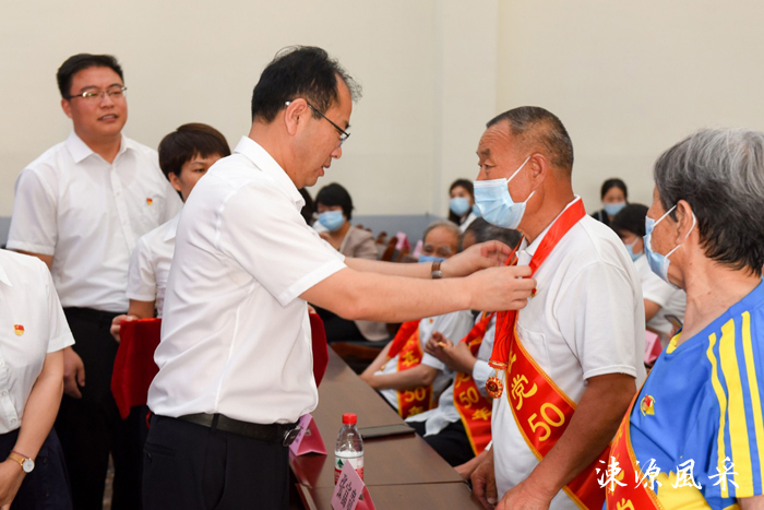 本报讯 6月25日,我县举行县直机关“光荣在党50年”纪念章颁发仪式,县委副书记解伟龙出席活动,为“光荣在党50年”党员代表颁发纪念章。