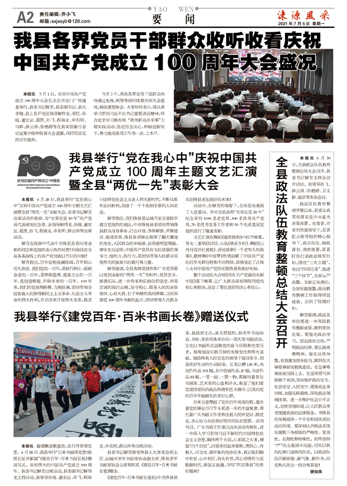 当天上午,我县各界党员干部群众纷纷通过电视、网络等收听收看庆祝大会盛况,畅谈感想体会。大家纷纷表示,将认真学习贯彻习近平总书记重要讲话精神,结合党史学习教育和“我为群众办实事”主题实践活动,坚定信念决心,积极创新实干,努力推动各项工作争一流、上水平。