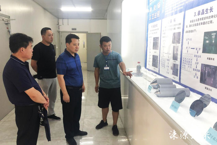 本报讯 7月5日,县委常委、统战部长申东明带领县工商联、工信科局、开发区等部门相关人员深入到中科晶电信息材料有限公司调研工业运行情况。