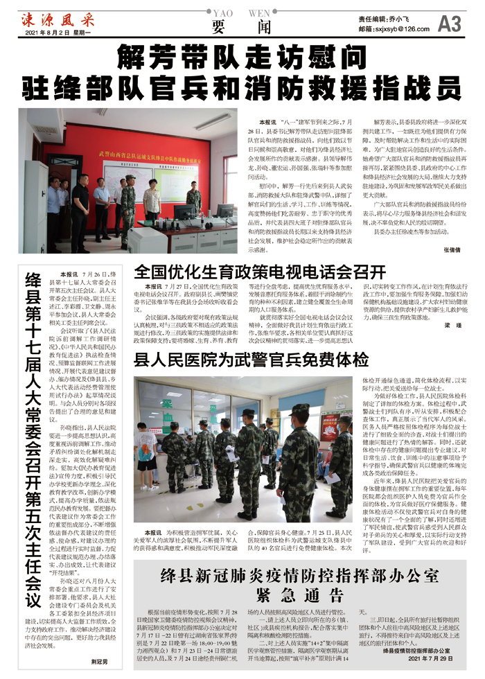 解芳带队走访慰问驻绛部队官兵和消防救援指战员