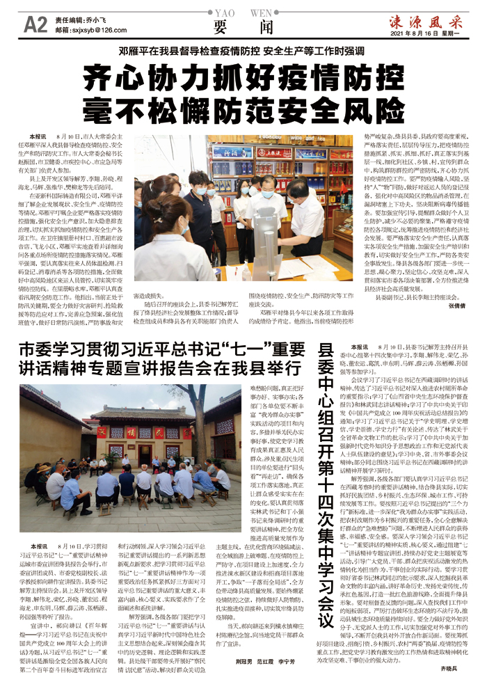 齐心协力抓好疫情防控 毫不松懈防范安全风险