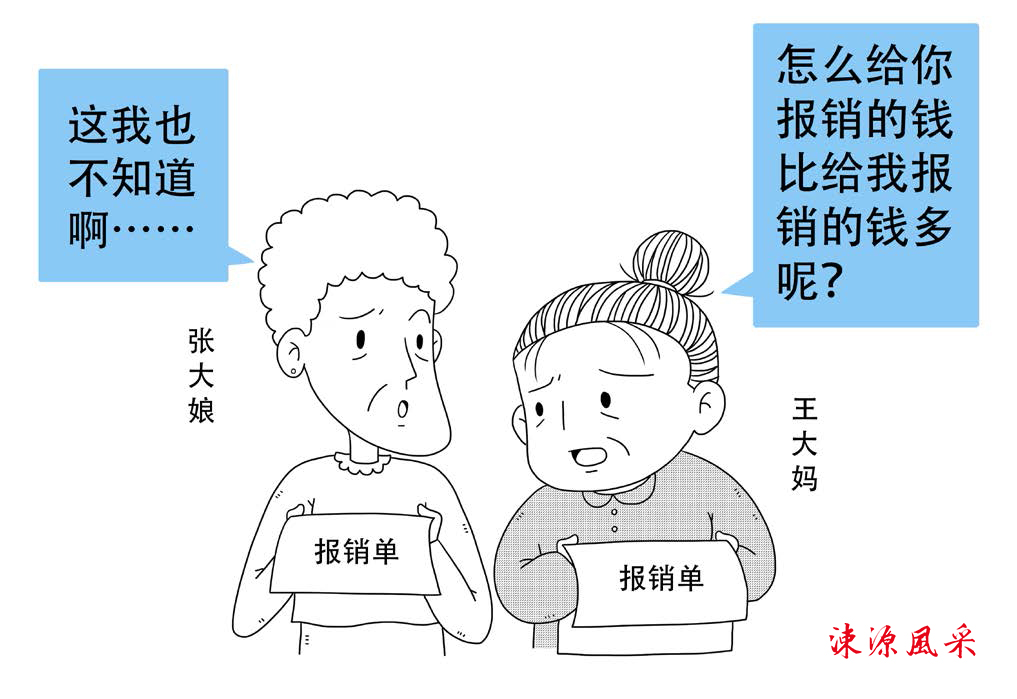 答14:因为张大娘参加的是城乡居民医疗保险, 王大妈参加的是职工基本医疗保险,两个人参加的是不同类型的医保。由于职工基本医疗保险与城乡居民医疗保险这两个险种在参保和筹资上有差别,职工医疗保险年均缴费要几千元,居民医疗保险年人均缴费只有几百元,报销待遇不同,所以报销的费用也不同。
