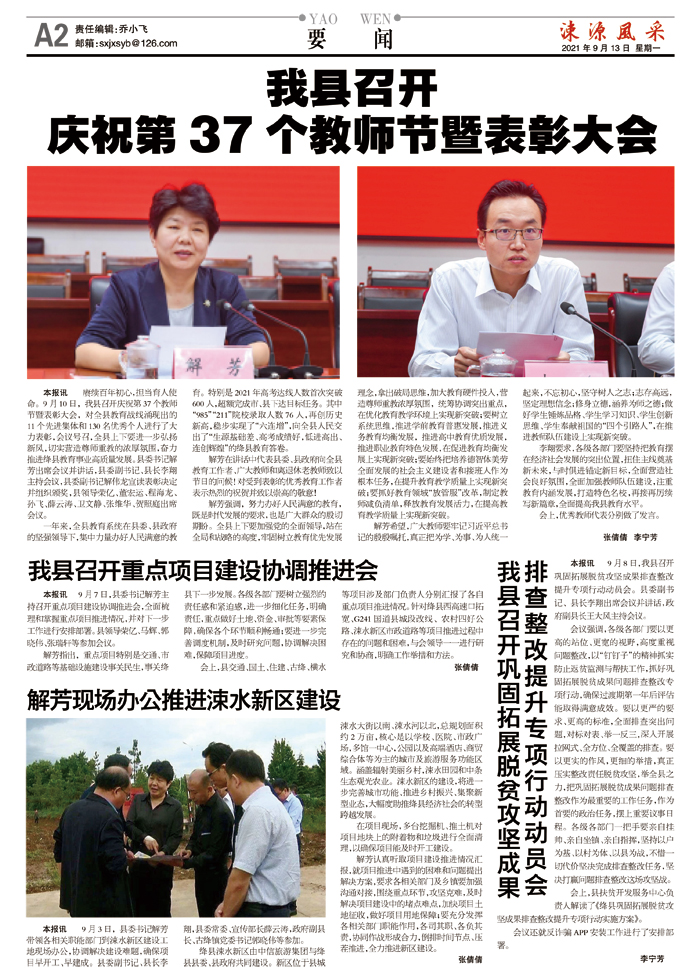 本报讯 赓续百年初心,担当育人使命。9月10日,我县召开庆祝第37个教师节暨表彰大会,对全县教育战线涌现出的11个先进集体和130名优秀个人进行了大力表彰,会议号召,全县上下要进一步弘扬新风,切实营造尊师重教的浓厚氛围,奋力推进绛县教育事业高质量发展。县委书记解芳出席会议并讲话,县委副书记、县长李翔主持会议,县委副书记解伟龙宣读表彰决定并组织颁奖,县领导荣亿、董宏运、程海龙、孙飞、薛云涛、卫文静、张维华、贺照庭出席会议。