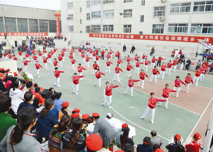 绛县太极拳是由绛县太极拳协会组织并发展起来的。从县城蔓延到各乡镇和工厂企业,平日早晚在广场和操场演练,节假日集中表演,今年成了元宵佳节的必上节目。其特点是舒展简洁,动作和顺,轻灵圆活,松柔慢匀,开合有序,刚柔相济,如“行云流水,连绵不断”。能自然地表现出气派大,形象美的独特风格。其架式有高、中、低之分。可以按照学拳者不同年龄、性别、体力条件和不同的要求适当调整运动量。既适用于疗病保健,益寿延年,又适用于节日表演,阴阳相济,自然高雅,可从中悟到音乐的韵律,哲学的内涵,美的造型,诗的意境。
