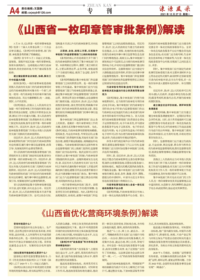 《山西省一枚印章管审批条例》解读