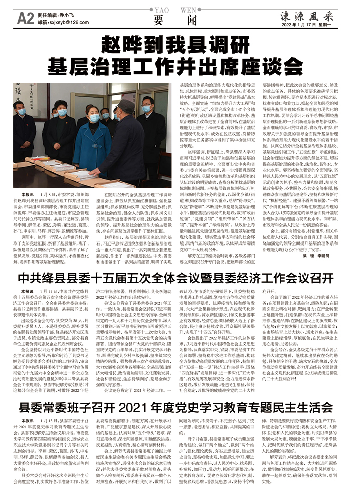 赵晔到我县调研基层治理工作并出席座谈会