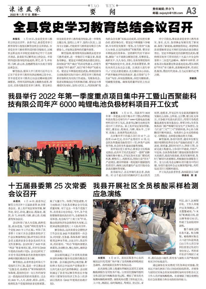 我县举行2022年第一季度重点项目集中开工暨山西聚能科技有限公司年产6000吨锂电池负极材料项目开工仪式