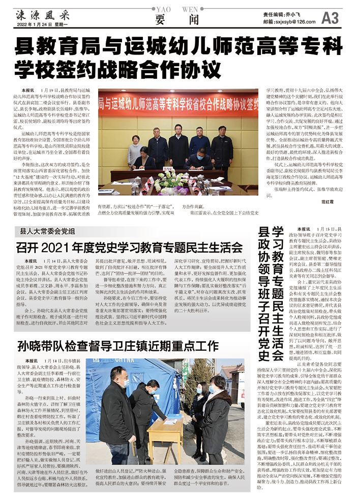 县教育局与运城幼儿师范高等专科学校签约战略合作协议