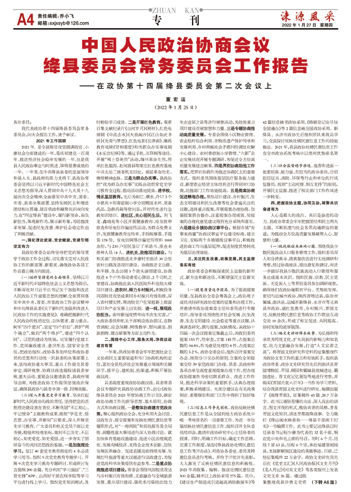 中国人民政治协商会议绛县委员会常务委员会工作报告