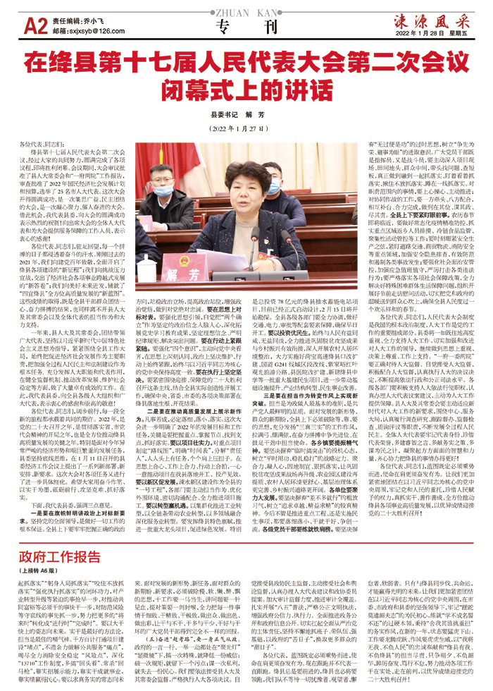 在绛县第十七届人民代表大会第二次会议闭幕式上的讲话