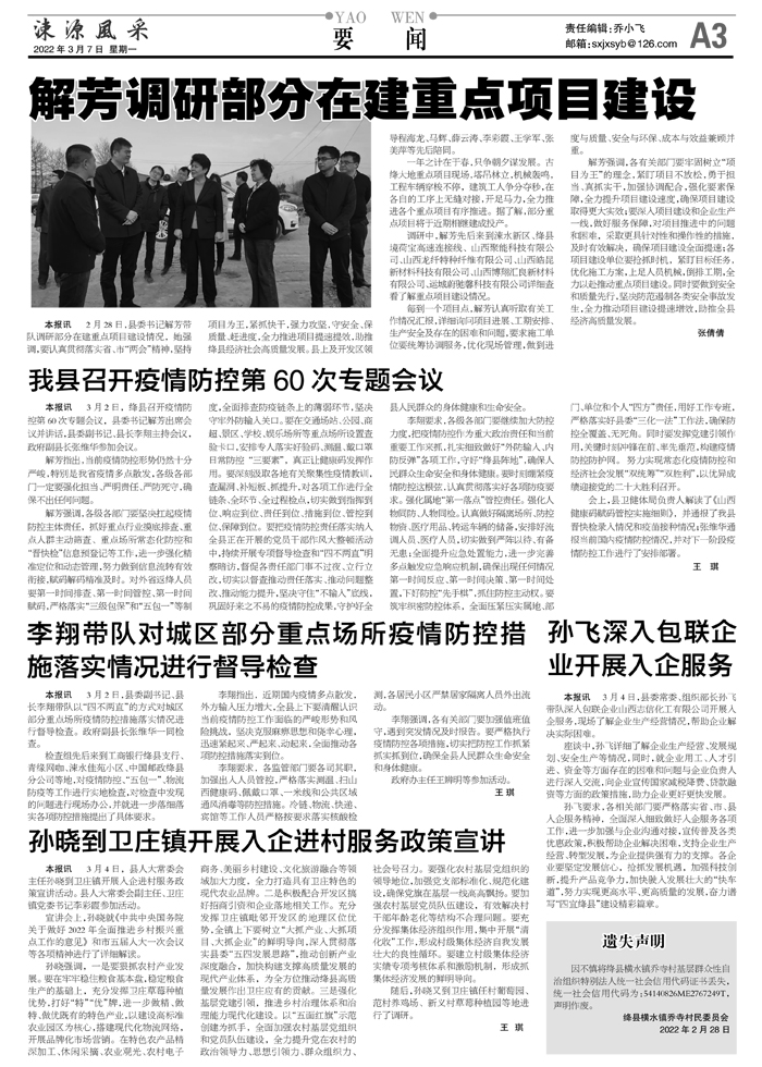 解芳调研部分在建重点项目建设