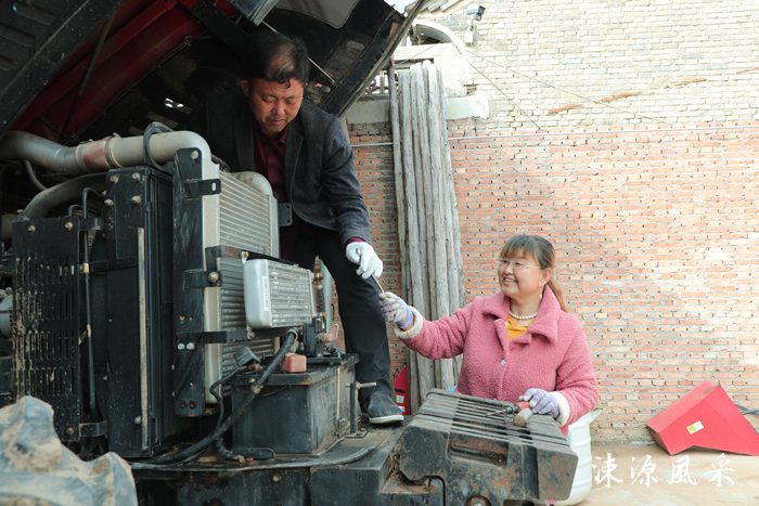 希水香(右)与丈夫徐永宪检修农机