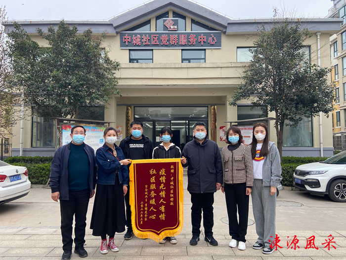 社区居民为纽舒敏(左二)送来锦旗