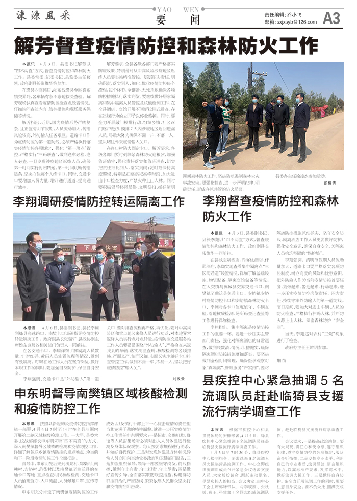 解芳督查疫情防控和森林防火工作