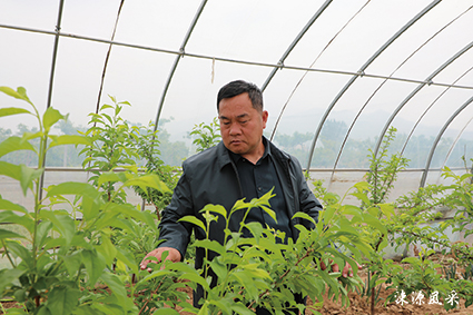 陈伟杰查看大棚西梅长势